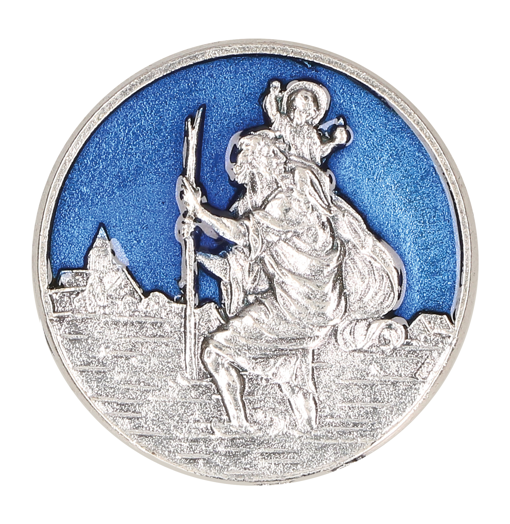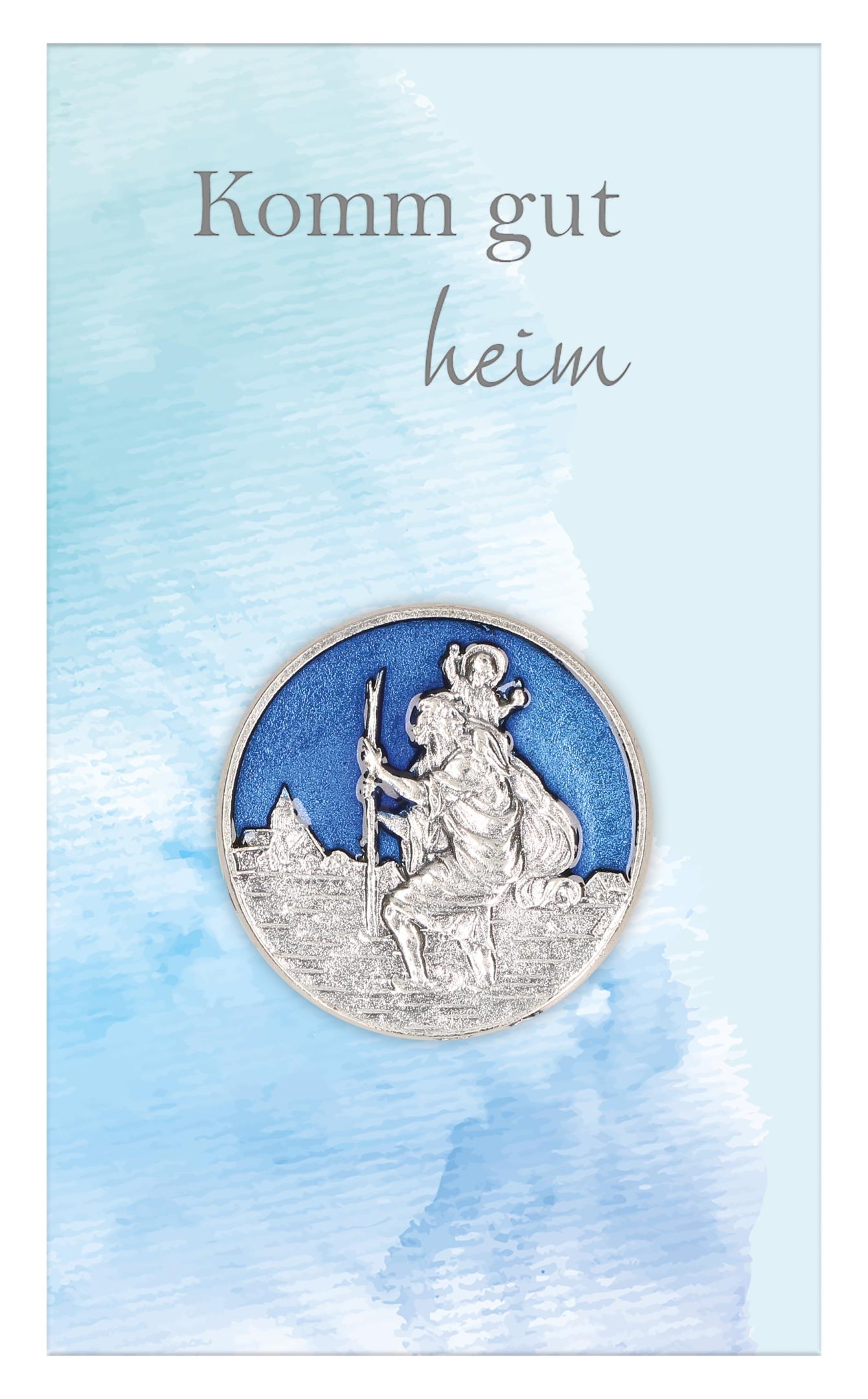 - Inhalt: Christophorus-Plakette aus Metall, blau, selbstklebend und mit Magnet, Lieferung auf Backcard,