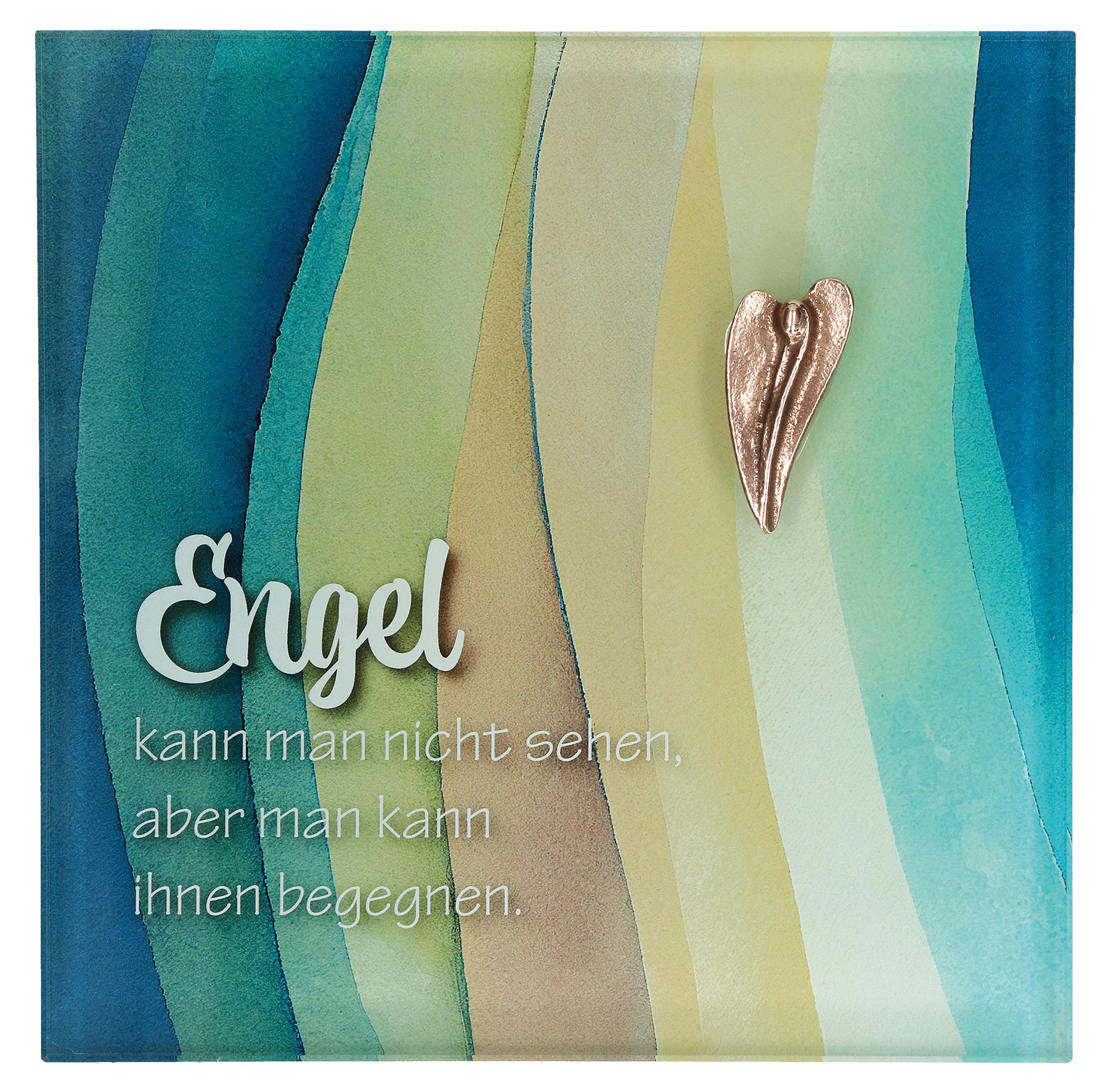 - Inhalt: Glastafel mit Engel aus Bronze, farbig bedruckt, mit stabiler Aufhängung, Lieferung in Geschenkverpackung,