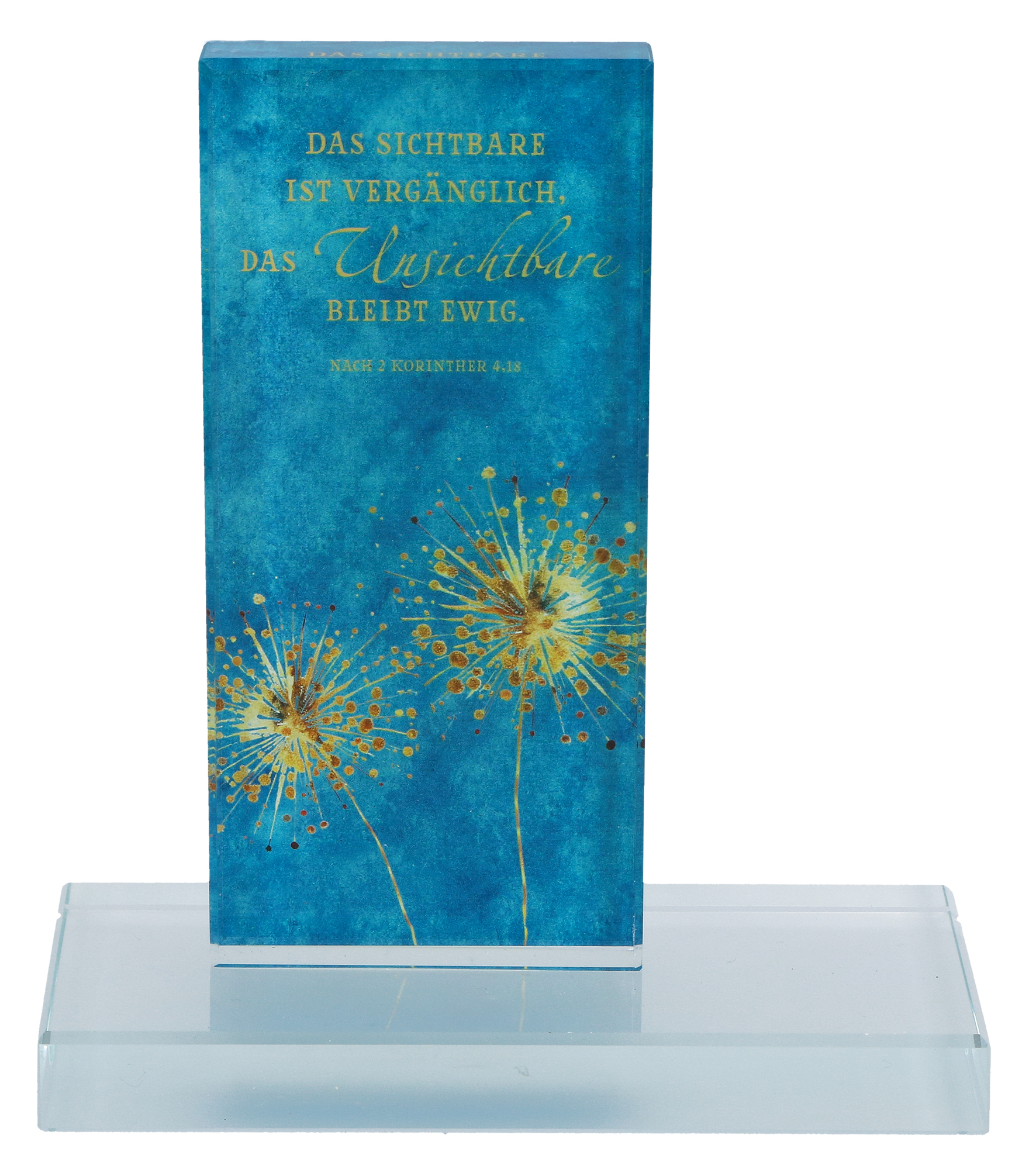 Text auf dem Produkt: Das Sichtbare ist vergänglich, das Unsichtbare bleibt ewig. (nach 2 Korinther 4,18 / nach Einheitsübersetzung)