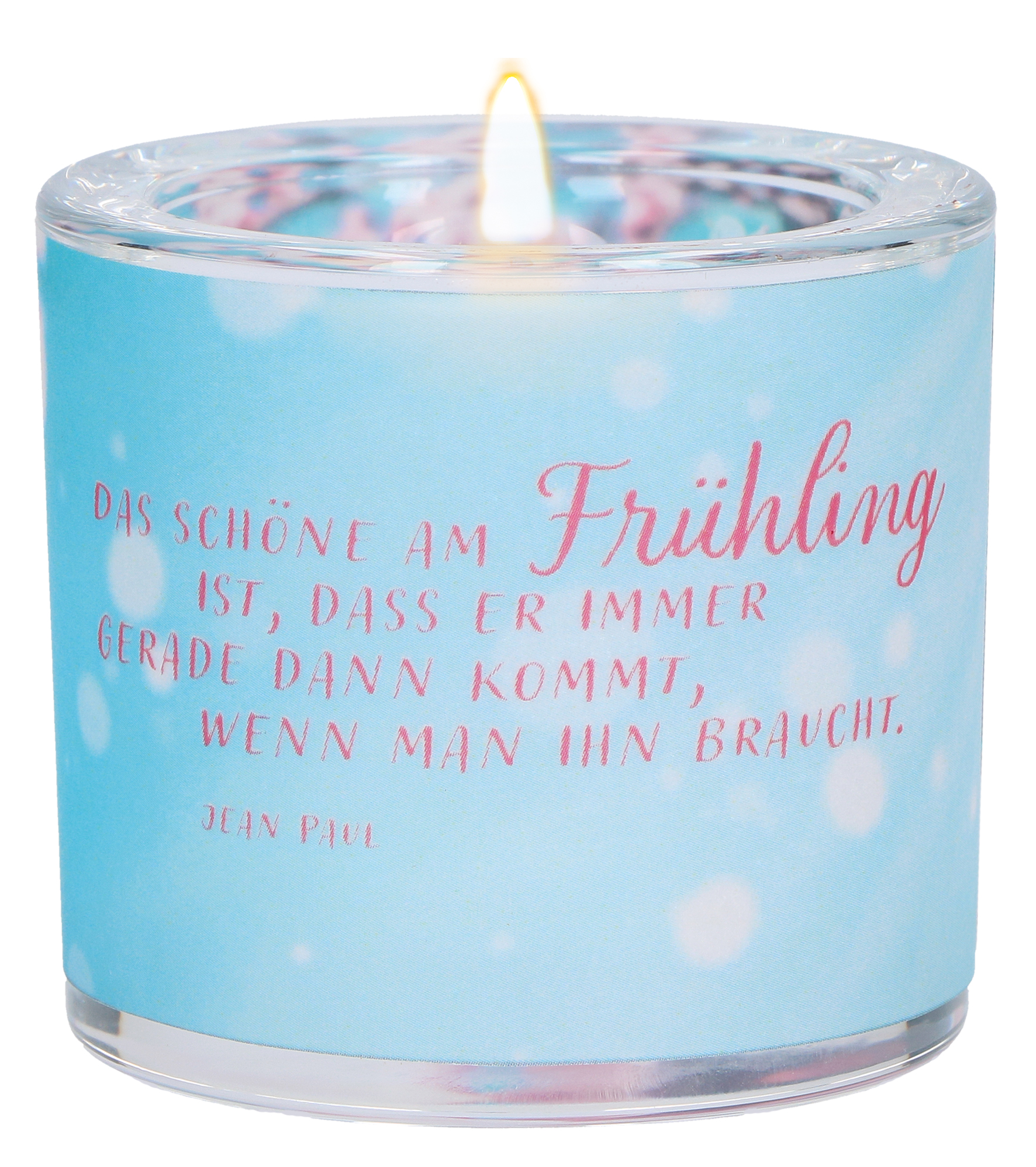 - Inhalt: Glaswindlicht mit farbig bedrucktem Pergamentumleger, Lieferung in blauer Geschenkverpackung mit weißem Teelicht.,