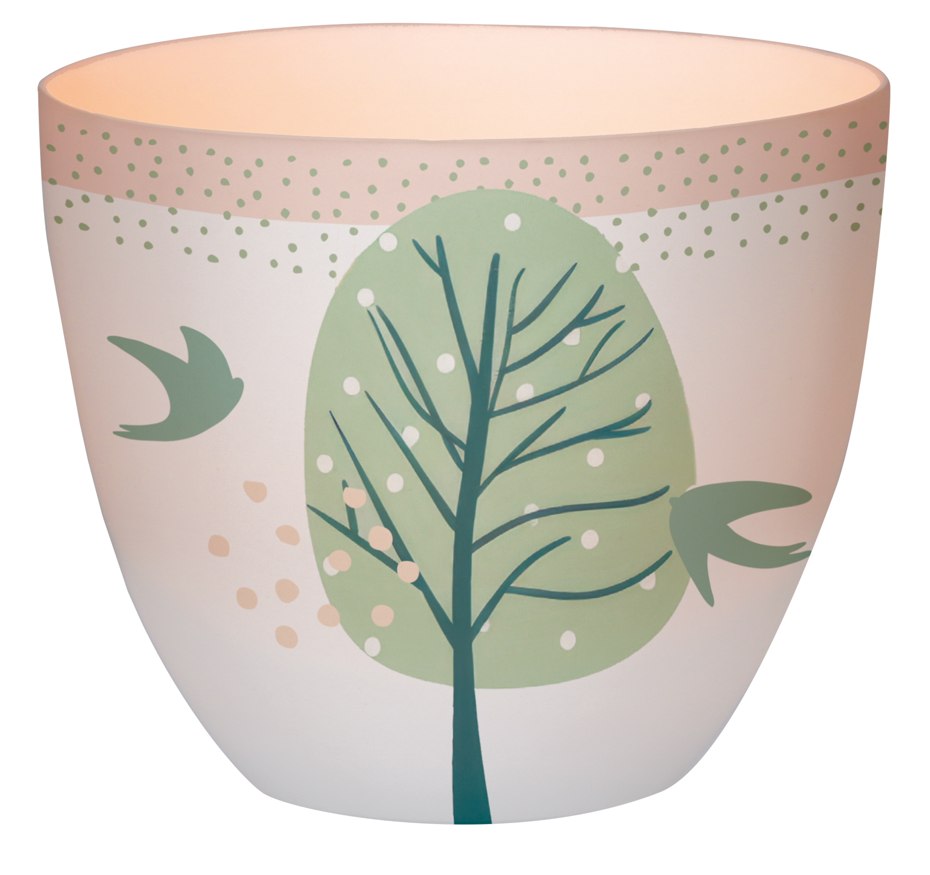 Dieses Windlicht wird im Nassschiebeverfahren hergestellt, d.h. ein mit dem Motiv bedruckter Film wird auf den Porzellan-Rohling von Hand aufgebracht und anschließend im Brennofen ein zweites Mal gebrannt.