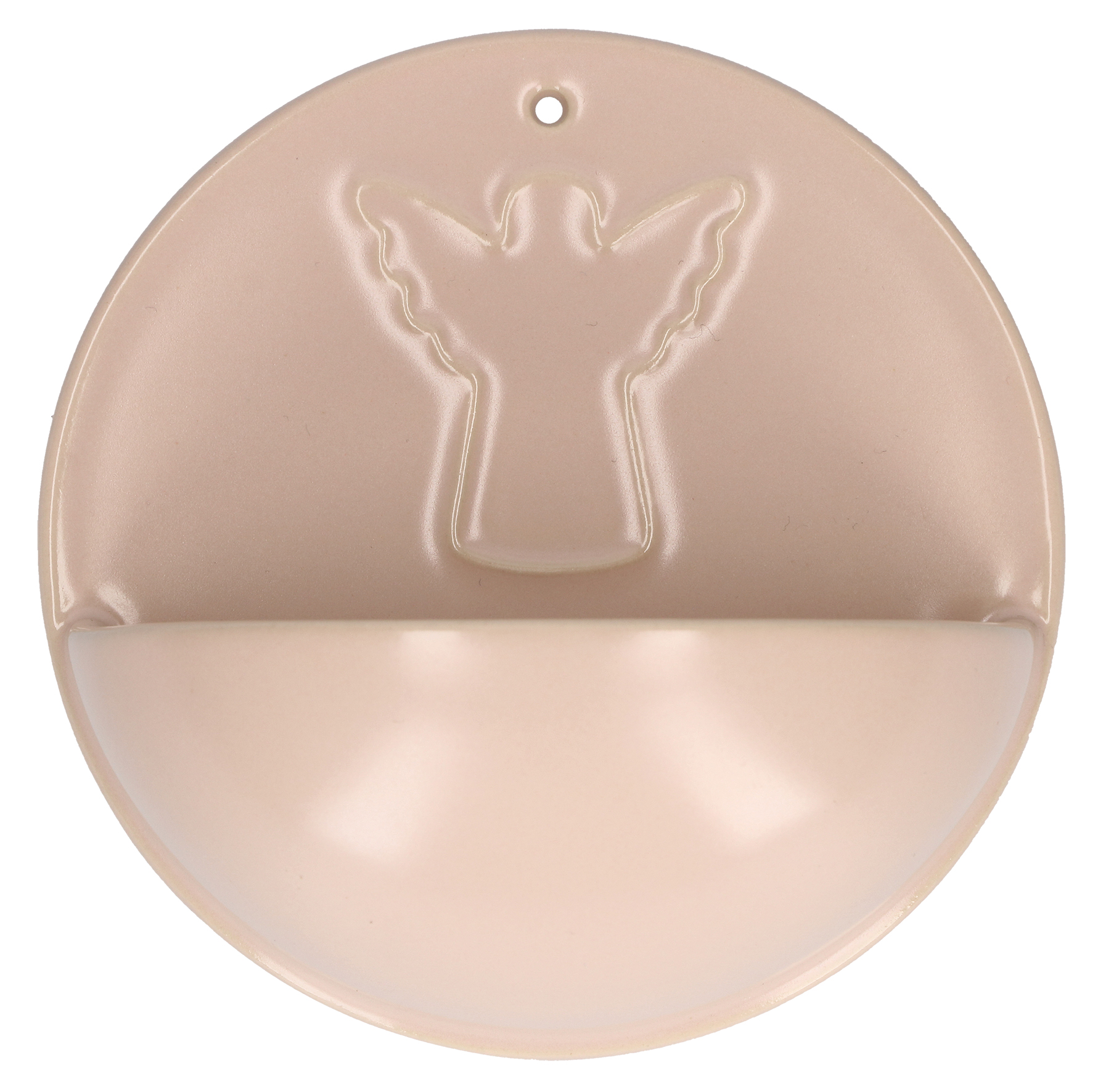 • Inhalt: Weihwasserbecken aus Porzellan, beige, matt, mit erhabenen Engelmotiv, Lieferung in Geschenkverpackung,