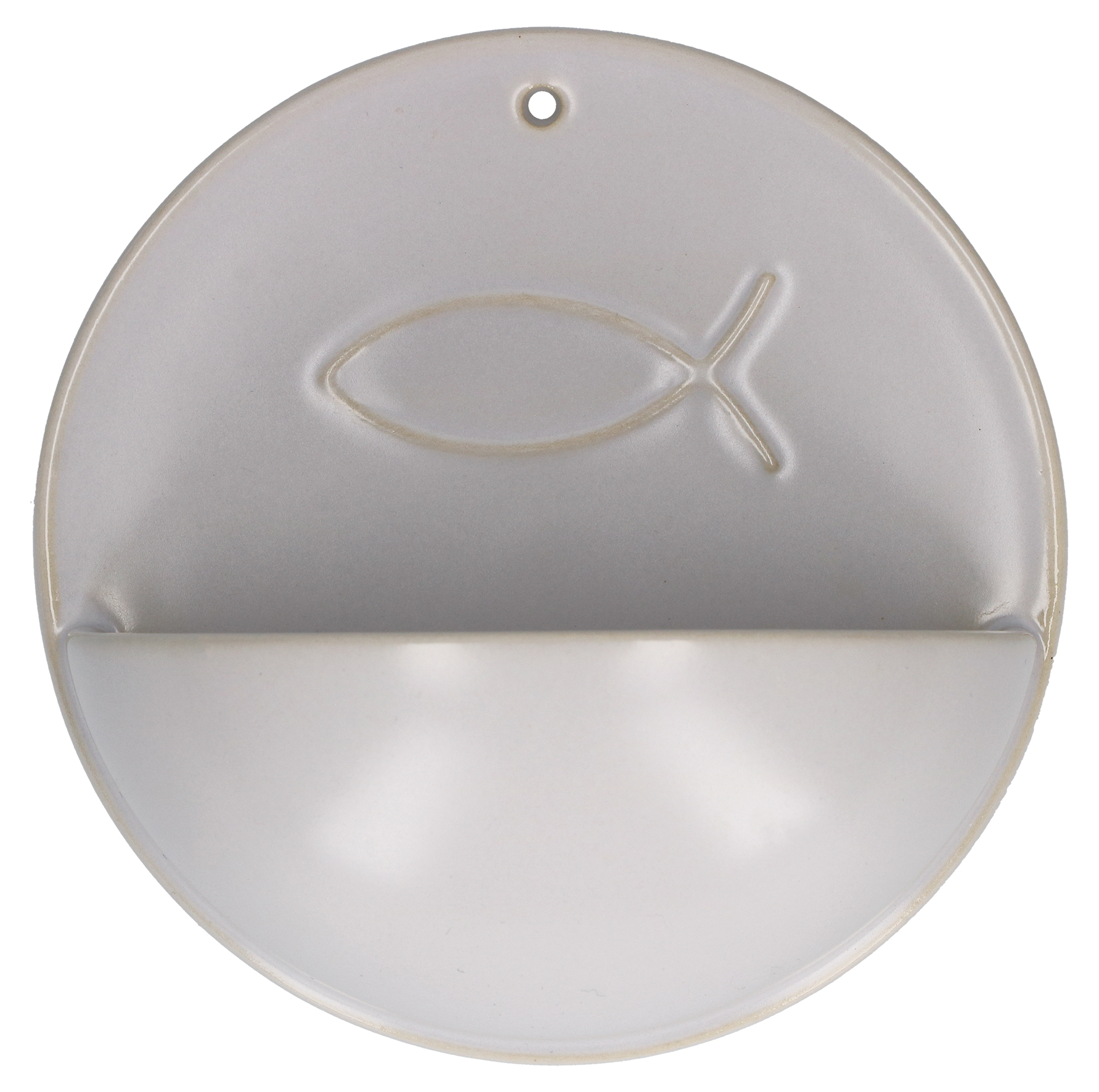 • Inhalt: Weihwasserbecken aus Porzellan, grau, matt, mit erhabenen Fischmotiv, Lieferung in Geschenkverpackung,