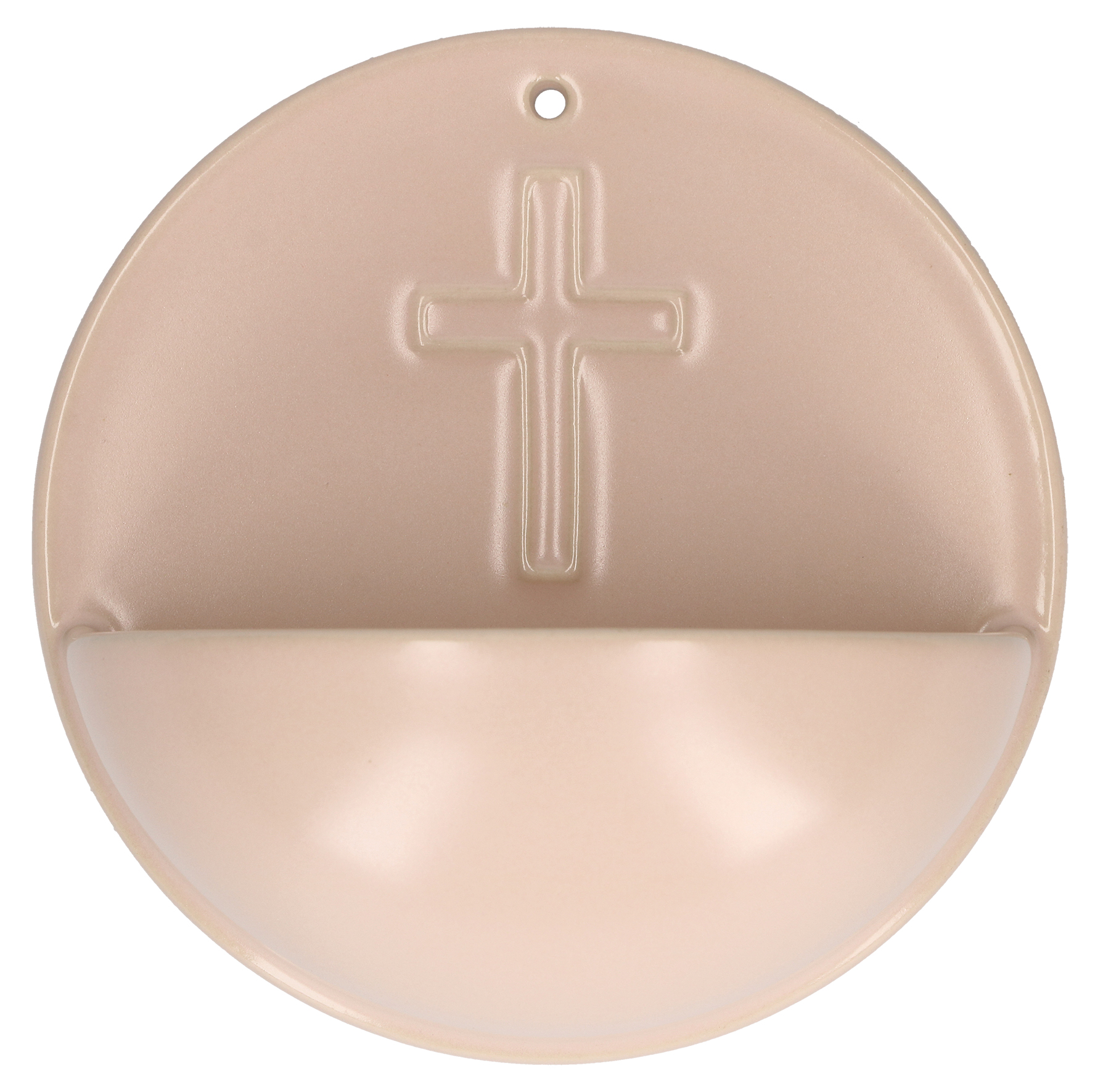 • Inhalt: Weihwasserbecken aus Porzellan, beige, matt, mit erhabenen Kreuzmotiv, Lieferung in Geschenkverpackung,