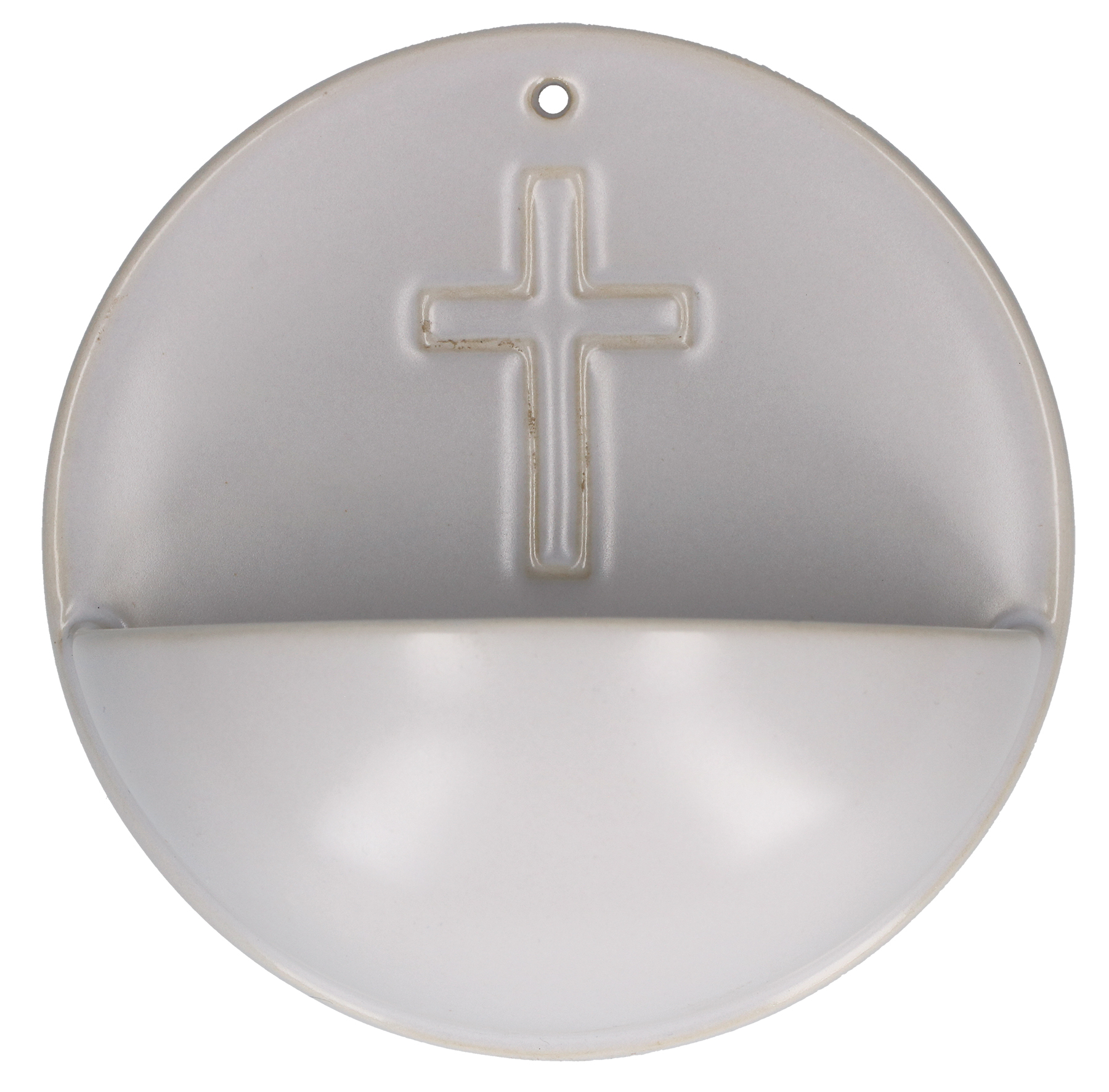 • Inhalt: Weihwasserbecken aus Porzellan, grau, matt, mit erhabenen Kreuzmotiv, Lieferung in Geschenkverpackung,