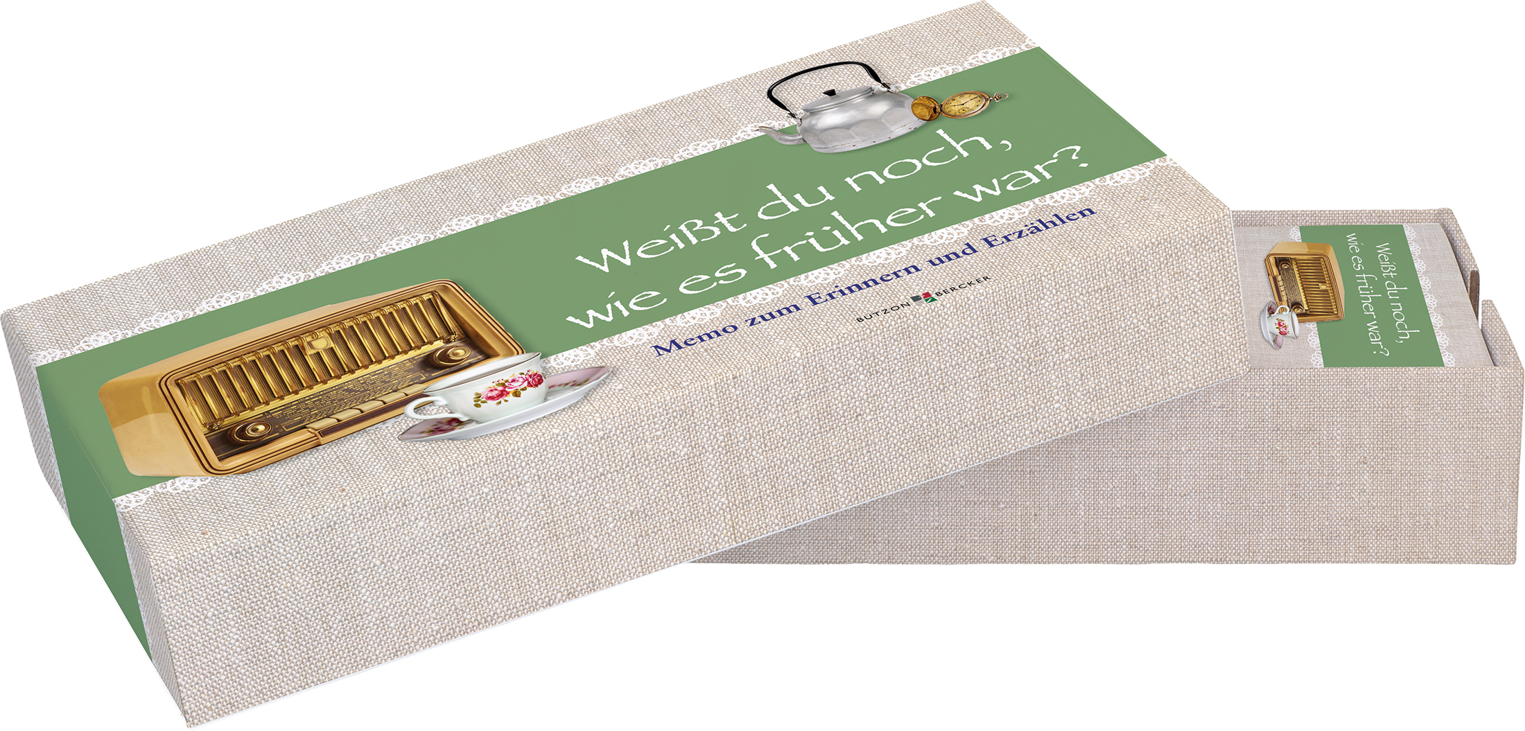 Dieses ansprechend gestaltete Memo-Spiel zeigt vertraute Alltagsgegenstände von früher – vom Brummkreisel bis zur Kaffeemühle. Die Bilder laden zum gemeinsamen Erinnern und Erzählen ein.
