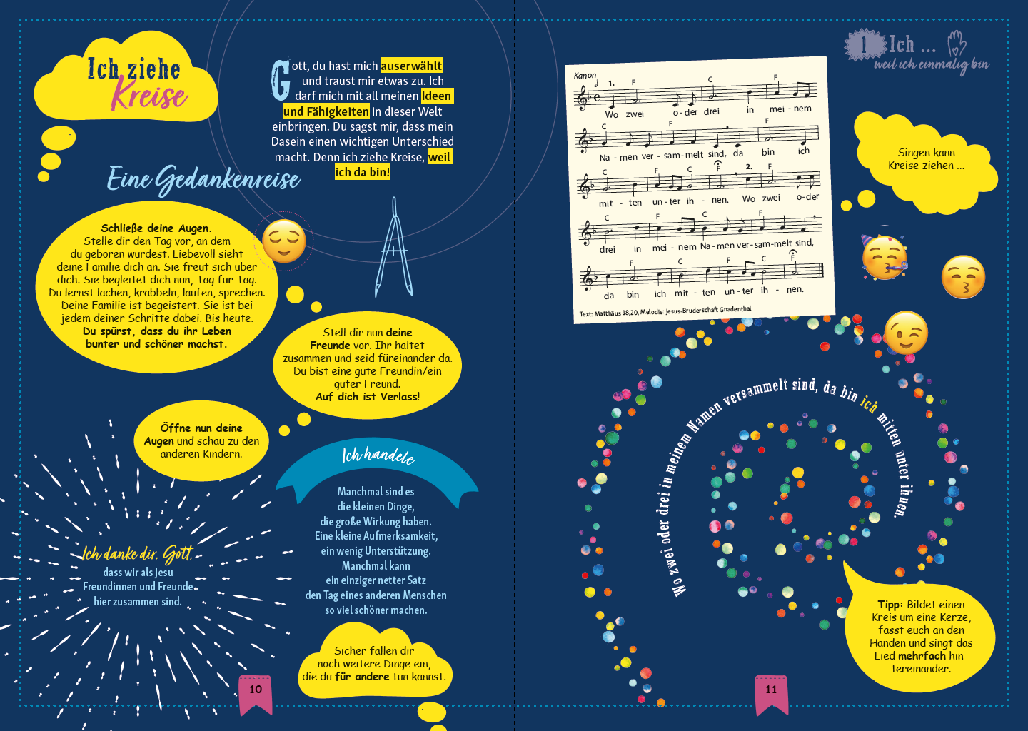 Wie können Mädchen und Jungen zeitgemäß auf Erstkommunion und Beichte vorbereitet werden? Dieses farbenfroh gestaltete Mitmachbuch bietet dazu viele interaktive Ideen, Seiten zum Eintragen und Gestalten, verständliche Erklärungen, biblische Geschichten, Lieder und Gebete. Die 11 ausgearbeiteten Einheiten lassen viel Spielraum, die wichtigsten Basics des Glaubens gemeinsam in der Gruppe zu erleben.
