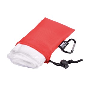 Praktischer Regenponcho mit Kapuze. Verpackt in einem kleinen umweltfreundlichen RPET-Beutel mit Karabinerhaken. Erhältlich in vier verschiedenen Farben.