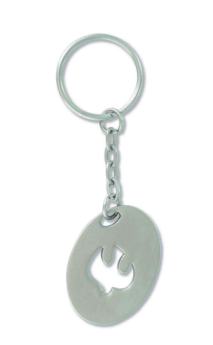 Schlüsselanhänger Taube aus Metall, Anhänger: 2,5 x 3,5 cm; Gesamtlänge: 8,5 cm
