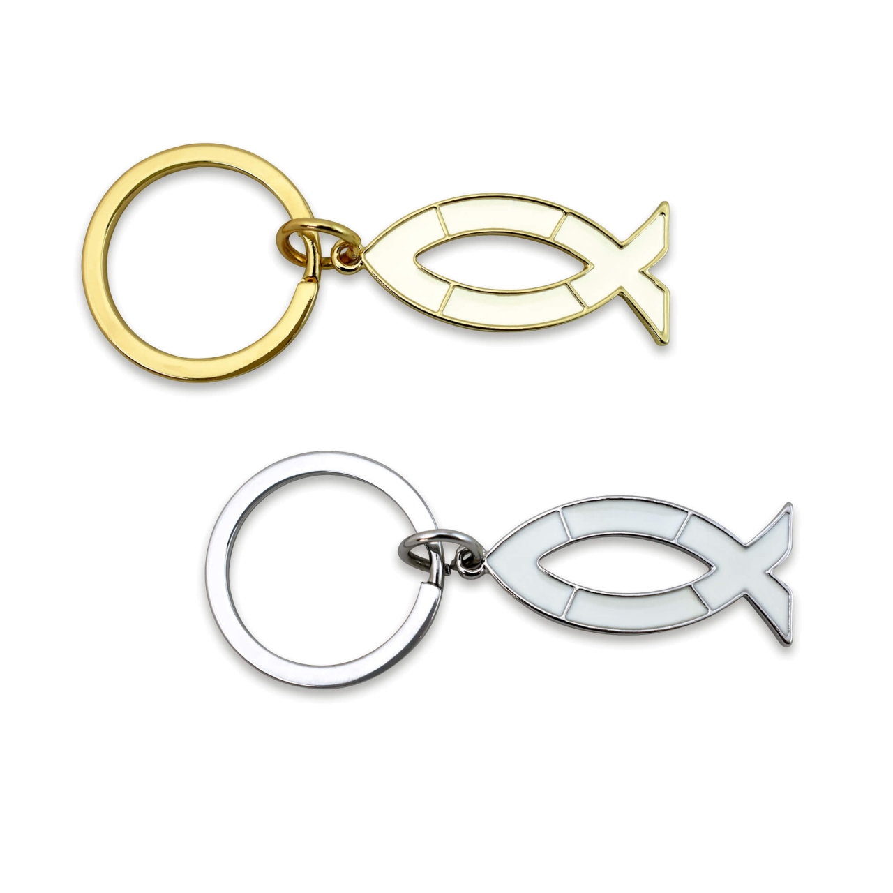 Schöner Schlüsselanhänger mit wertvoller Botschaft auf farbig bedrucktem Einleger mit Vers „Gott ist meine Kraft Ps 62,7“, fertig als Geschenk verpackt. Das ideale Präsent zur Kommunion, Konfirmation, aber auch zur Silber- und Goldkommunion, Silber- und Goldkonfirmation oder als kleines Dankeschön.  Aus Metall, gold- oder silberfarben, weiß emailliert, ca. 7 cm, mit Einleger in Klarsichtetui