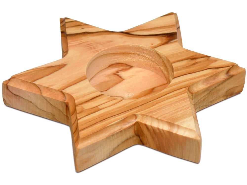 Teelichthalter in Sternform aus Olivenholz aus BethlehemIsrael ca. 11 cm ohne Teelicht im Organzabeutel